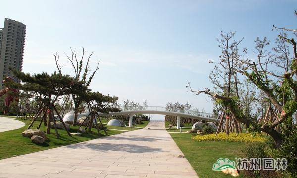 煙臺開發(fā)區(qū)濱海廣場項目位于開發(fā)區(qū)海濱路以北、峨眉山路與昆侖路之間,施工面積約10萬平方米,施工內(nèi)容主要包括綠化種植、硬質鋪裝、園林建筑、水電安裝等,施工內(nèi)容多,工藝要求高,工程量大,是一個大型綜合性園林工程項目,由杭州市園林綠化股份有限公司承建。