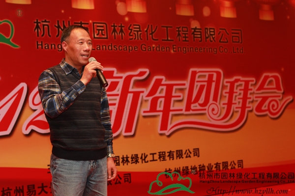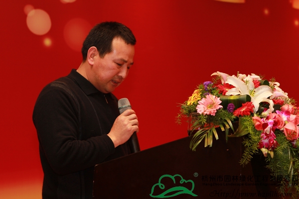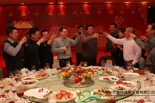表彰儀式結(jié)束后,董事長(zhǎng)吳光洪發(fā)表了新年致詞。吳董首先對(duì)各位領(lǐng)導(dǎo)和嘉賓的到來(lái)表示了熱烈歡迎;然后與大家共同回望了企業(yè)2011年所取得的成就,并對(duì)2012年的發(fā)展進(jìn)行了規(guī)劃和展望,他感謝大家對(duì)杭州園林一路的支持與關(guān)注,希望未來(lái)仍能與大家一起攜手前行;最后,吳董舉起手中的酒杯,與大家一起為新的一年干杯,并宣布晚宴正式開(kāi)始。