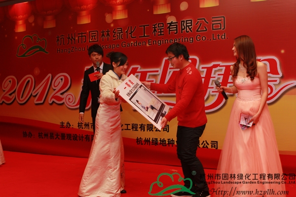 隨著晚宴的開(kāi)始,精彩的節(jié)目表演也拉開(kāi)了序幕。一曲熱情激昂的鼓樂(lè)《中國(guó)龍》,營(yíng)造出了龍年吉祥喜慶的節(jié)日氛圍,隨后,唯美的獨(dú)舞表演、深情的情歌對(duì)唱、優(yōu)美的葫蘆絲吹唱,功夫茶道、詩(shī)詞朗誦、搞笑小品……一個(gè)又一個(gè)精彩節(jié)目,將現(xiàn)場(chǎng)的氣氛一次次推向高潮。而期間最令人期待的,是現(xiàn)場(chǎng)的抽獎(jiǎng)環(huán)節(jié),一等獎(jiǎng)的42寸高清液晶電視機(jī)、二等獎(jiǎng)的皇冠寢室羽絨被、三等獎(jiǎng)的博洋家紡四件套,豐厚的獎(jiǎng)品讓每個(gè)人都期待著幸運(yùn)的降臨,隨著一組組數(shù)字的公布,抽到獎(jiǎng)的人一個(gè)個(gè)歡喜雀躍,興高采烈地領(lǐng)走了獎(jiǎng)品,現(xiàn)場(chǎng)成為一片歡樂(lè)的海洋。最后,投標(biāo)中心的一曲《明天會(huì)更好》,傳達(dá)了所有人對(duì)2012年的美好期待和祝愿,也預(yù)示著杭州市園林綠化工程有限公司2012年新春團(tuán)拜會(huì)的圓滿(mǎn)成功!