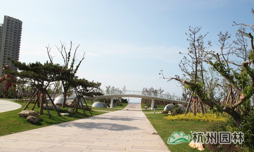 人行路橋高6米,長60米,與園路相互連接,立于橋上,可觀四季美景,覽海灘盛宴,是廣場中觀景的好去處。