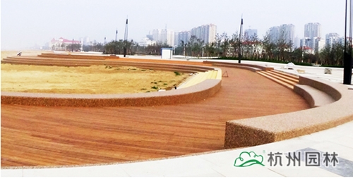 煙臺(tái)開發(fā)區(qū)濱海廣場項(xiàng)目位于開發(fā)區(qū)海濱路以北、峨眉山路與昆侖路之間,施工面積約10萬平方米,施工內(nèi)容主要包括綠化種植、硬質(zhì)鋪裝、園林建筑、水電安裝等,施工內(nèi)容多,工藝要求高,工程量大,是一個(gè)大型綜合性園林工程項(xiàng)目,由杭州市園林綠化股份有限公司承建。