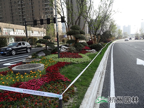 在新塘路工程現(xiàn)場,李強(qiáng)一行聽取了杭州市園林綠化股份有限公司總裁張炎良關(guān)于工程建設(shè)情況的匯報(bào),并提出要求,從小處著眼,把道路環(huán)境整治做精做細(xì)。新塘路是杭州火車東站集散旅客的主要干道,現(xiàn)已初步實(shí)現(xiàn)交通優(yōu)化,其中,新風(fēng)路至鳳起東路段景觀效果已初步顯現(xiàn),豐富的植物配置、色彩鮮艷的草花、自然的景石,使得這段道路顯得開闊大氣,充滿生機(jī)。