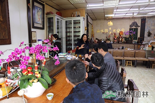 山水園林景觀公司的楊枚良女士有多年的櫻花引種、繁育、栽培、應(yīng)用經(jīng)驗,在臺灣業(yè)內(nèi)素有“櫻花女王”之稱??疾炱陂g,考察人員特地前往山水園景觀公司拜訪楊枚良女士,交流櫻花引種、生產(chǎn)、栽培經(jīng)驗,并前往山水園林景觀公司的櫻花苗圃基地參觀,實地考察臺灣地區(qū)主要栽培櫻花品種的生產(chǎn)、栽培情況。