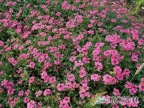 美女櫻,其姿態(tài)優(yōu)美,花色豐富,色彩艷麗,盛開時如花海一樣,令人流連忘返。美人櫻株叢矮密,花繁色艷,開花部分呈傘房狀,花色有白、紅、藍、雪青、粉紅等,花期為5-11月。喜陽光、不耐陰,較耐寒、耐蔭差、不耐旱?;ㄆ诳蓢娏姿岫溻?,促進花開放。