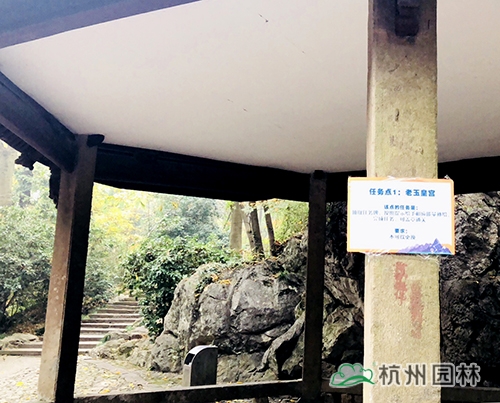 本次活動(dòng)的終點(diǎn)為玉皇山頂?shù)摹敖挥[閣”。玉皇山是杭州絕佳的觀秋景高地,站在山頂,可俯瞰杭州全城,八卦田的神秘、西湖的絢麗等盡收眼底;山上則是古樹(shù)參天,紅葉似火,黃葉賽金,彩林岑巒疊峰,如入畫(huà)里。大家從玉皇山北門(mén)上山,途經(jīng)林海亭、老玉皇宮、櫻花地、紫來(lái)洞天、七星亭,最后到達(dá)山頂?shù)摹敖挥[閣”。此次登山途中設(shè)立了3個(gè)任務(wù)點(diǎn),參加活動(dòng)人員需要完成相應(yīng)任務(wù),才能蓋章通關(guān)。