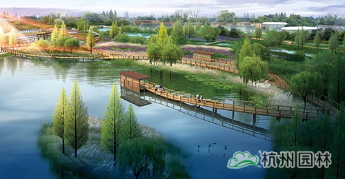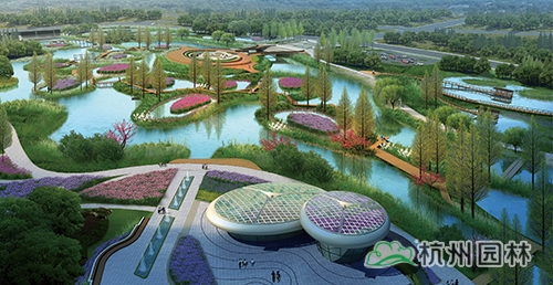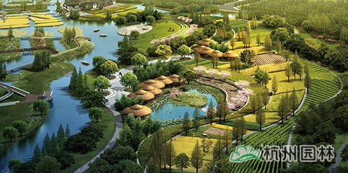 樂活園藝主題區(qū):以家庭園藝花園為主,是公園的圩田濕地體驗中心,水道如巷,河汊如網(wǎng)的圩田農(nóng)藝景觀,呈現(xiàn)出田園牧歌般的意境。包含飄帶走廊、水蕩花田等景點。