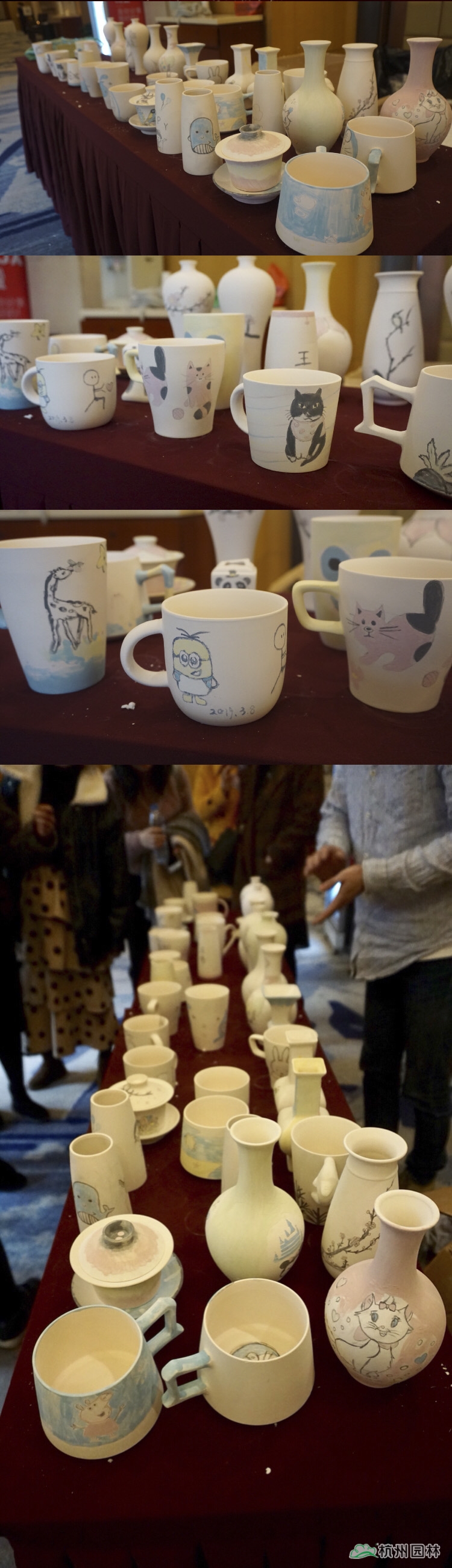 說起陶藝,大家想到的肯定是雙手扶著轉(zhuǎn)盤上的陶泥,捏出形態(tài)各異作品的場(chǎng)景,但今天我們玩點(diǎn)不一樣的。素胚固然清爽,但少了色彩的點(diǎn)綴,總會(huì)覺得好像黑白電影略顯枯燥。是的,這次我們將畫紙搬到了這些瓶瓶罐罐之上。認(rèn)真的女人真的很美,一幅幅生動(dòng)的畫作在短短的一個(gè)多小時(shí)的時(shí)間里展現(xiàn)在了大家的眼前。有山水,有動(dòng)物,有卡通畫,有說要送給家中寶寶的,也有說這代表了我們一家三口的。拿起畫筆的小仙女們,不再是那些個(gè)日常辦公室里的形象了,她們?cè)诮裉欤炎约旱目蓯?、風(fēng)趣、溫婉、隨性等等面貌展現(xiàn)得淋漓盡致。