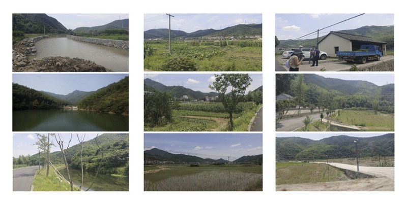 坑西溪自北向南流經(jīng)唐家塢村建設區(qū)內(nèi),流經(jīng)項目規(guī)劃范圍區(qū)分了位于東西側(cè)的農(nóng)田和山林,村子周邊山坳現(xiàn)存多處水庫:建設區(qū)內(nèi)的灌溉水源來自上唐水庫水質(zhì)清晰,周邊環(huán)境優(yōu)美,是飲用水庫,可發(fā)展環(huán)水庫觀光休閑項目;和姆嶺塢水庫周圍環(huán)境優(yōu)美,是非飲用水庫,可發(fā)展諸多水上運動。設計范圍內(nèi)現(xiàn)有諸多灌溉水渠和水池,山林有一處山泉。