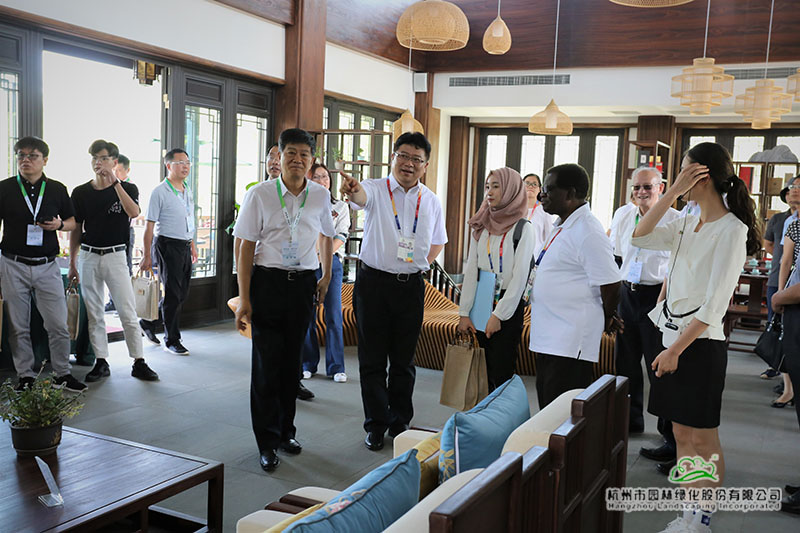 移步大露臺,嘉賓們憑欄眺望,小橋流水,花木蔥郁,“花園浙江”景致如詩如畫。胡俠局長詳細介紹了“浙江園”的設(shè)計主題、結(jié)構(gòu)布局和意境表達,嘉賓們頻頻點頭贊許,對浙江園的建設(shè)給予了高度評價,認為浙江園較好地展現(xiàn)了美麗浙江景象和生態(tài)文明建設(shè)成果。