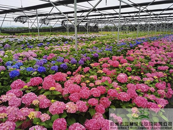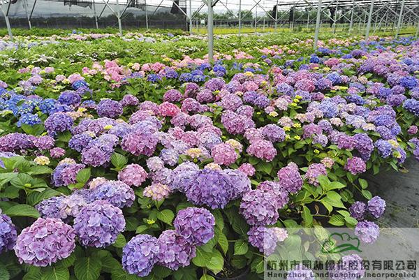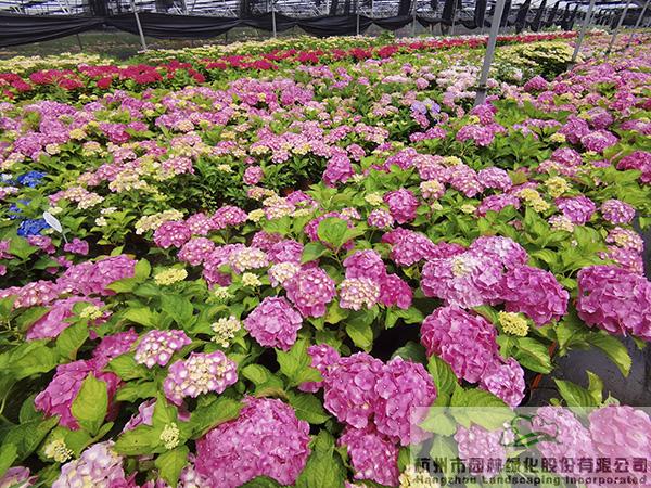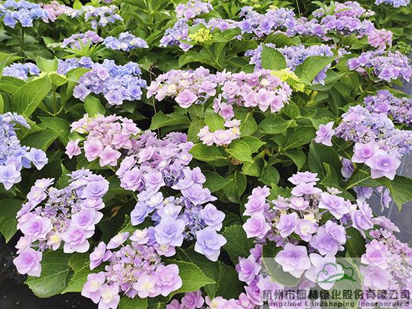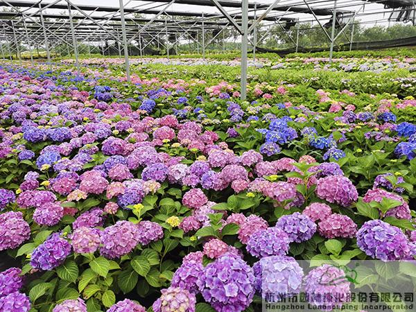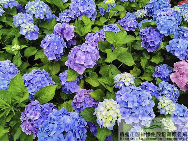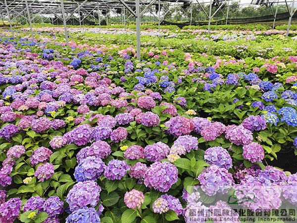 五、六月份,走進杭州畫境種業(yè)有限公司徑山基地,依然是一片忙碌的景象,工人們正在忙著苗圃的管理,客戶們正在忙著看苗選苗。在滿眼的綠色中,獨有一片姹紫嫣紅瞬間吸引了人的目光。走近一看,原來是盛開的繡球。琳瑯滿目的品種,繽紛絢麗的色彩,在夏日的陽光下恣意綻放,開出一片繁花似錦,開出一場花海盛宴。話不多說,先看一波美圖吧。