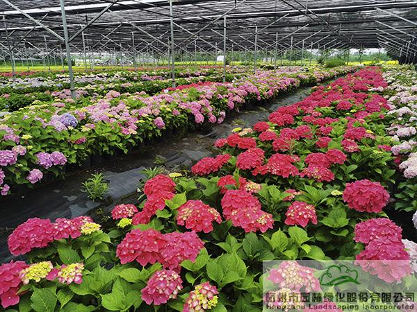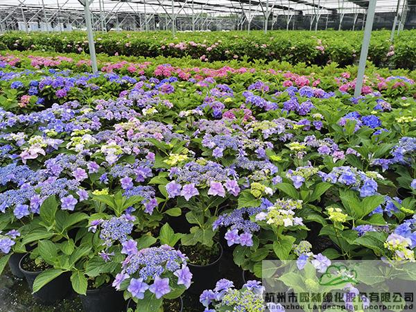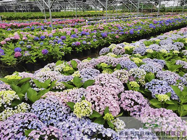 據悉,在畫境種業(yè)徑山基地,共有七八十個繡球品種,規(guī)格從1加侖到5加侖,能夠滿足家庭園藝和工程用苗的多種需求。通過近幾年的生產和繁育,徑山基地不斷篩選優(yōu)良的繡球品種,目前,基地里的這些品種表現都比較好,比如紅色系的搖擺樂、漢堡、花神,花色紅艷,花朵碩大,在一眾繡球中表現非常搶眼;花色豐富多變、宛如一顆顆璀璨寶石的藍寶石和藍色媽媽;花朵宛如蝴蝶翩躚、花色充滿夢幻感的佳澄;花朵密集、猶如一大捧五顏六色爆米花的愛莎;開花早、花期長、花色漸變的藍色海洋;花開時,宛如一只只白色小鳥在枝頭紛飛的泉鳥;花團錦簇、花期超長的無盡夏……可以說,每一種繡球的花色、花形都各不相同,極具特色,充滿了夏日的浪漫情懷。