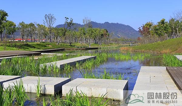 項(xiàng)目還充分利用滸溪及靈峰湖沿線的湖灣和眾多洼地,引水入園,打造雨水花園、下沉式綠地等,通過(guò)豐富的植物配置與景觀小品,形成沿湖而生的各個(gè)景點(diǎn),并設(shè)置各色景觀橋連通內(nèi)塘與外湖的生態(tài)通道,將周邊景點(diǎn)有機(jī)串連。花木葳蕤景色各異,湖光山色相映成趣,整個(gè)滸溪沿線形成一個(gè)可循環(huán)的生態(tài)系統(tǒng),有效改善和美化了周邊環(huán)境,展現(xiàn)可持續(xù)發(fā)展的造園理念。