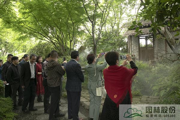 在李壽仁的帶領(lǐng)下,與會人員首先參觀了畫境·青山湖花園中心室外景觀展示區(qū)。五月的花園中心,綠意盎然,繁花綻放,鋪展開一幅生態(tài)自然、清新怡人的風景畫卷,引來大家的不斷贊嘆,紛紛直呼“太美了!”“太漂亮了!”