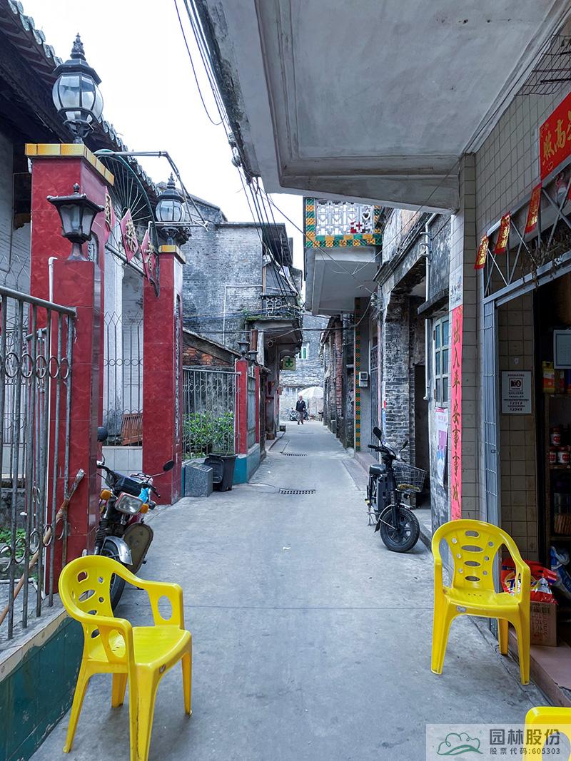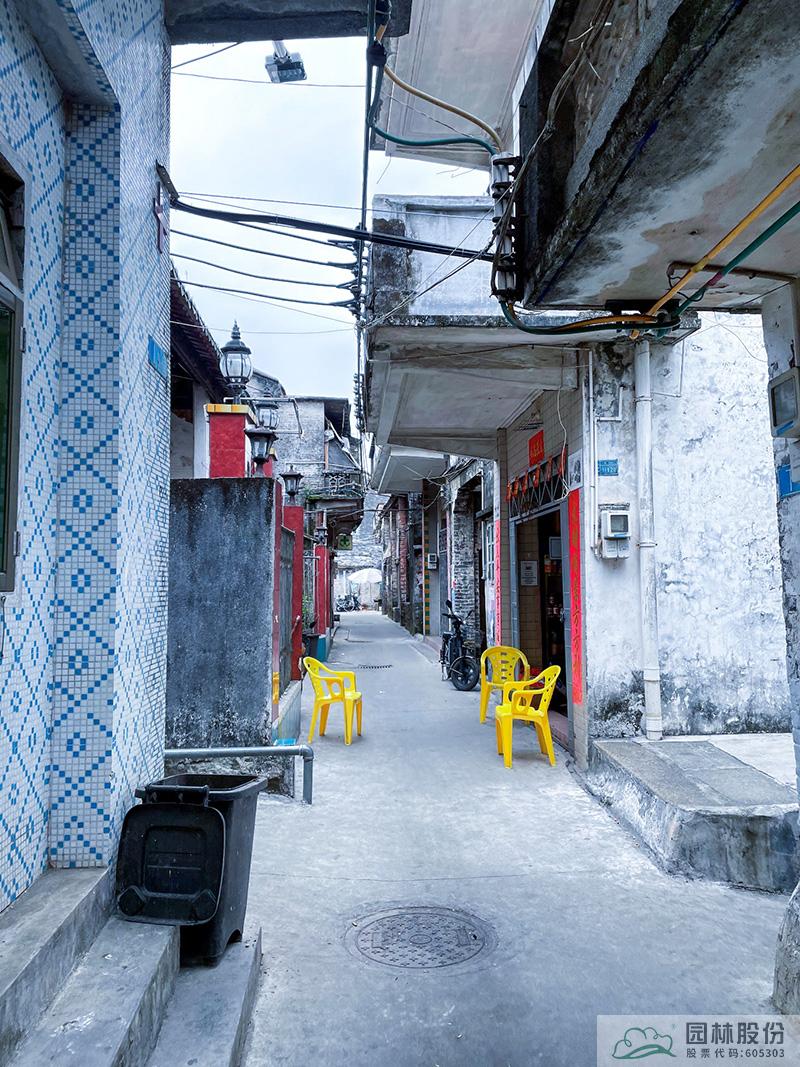 巷道改造現(xiàn)狀:現(xiàn)狀巷道為水泥路鋪裝,沿路缺少綠化,墻面磚砌樣式多樣,不統(tǒng)一,景觀效果不佳。