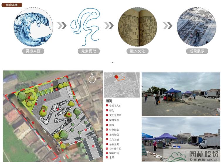 入口休閑廣場(chǎng)概念演繹設(shè)計(jì)說(shuō)明:現(xiàn)狀場(chǎng)地主要為一片空地,由于南面是菜場(chǎng),因此該場(chǎng)地在功能性上主要有貨車(chē)卸貨的功能,考慮村莊內(nèi)可能舉辦大型祭祀活動(dòng)或者紅白喜事,需要有大空間,所以在設(shè)計(jì)中留出了大片場(chǎng)地。因沿海城市,所以提取了海浪元素,結(jié)合當(dāng)?shù)貧v史文化及村落肌理,做出如圖設(shè)計(jì)。