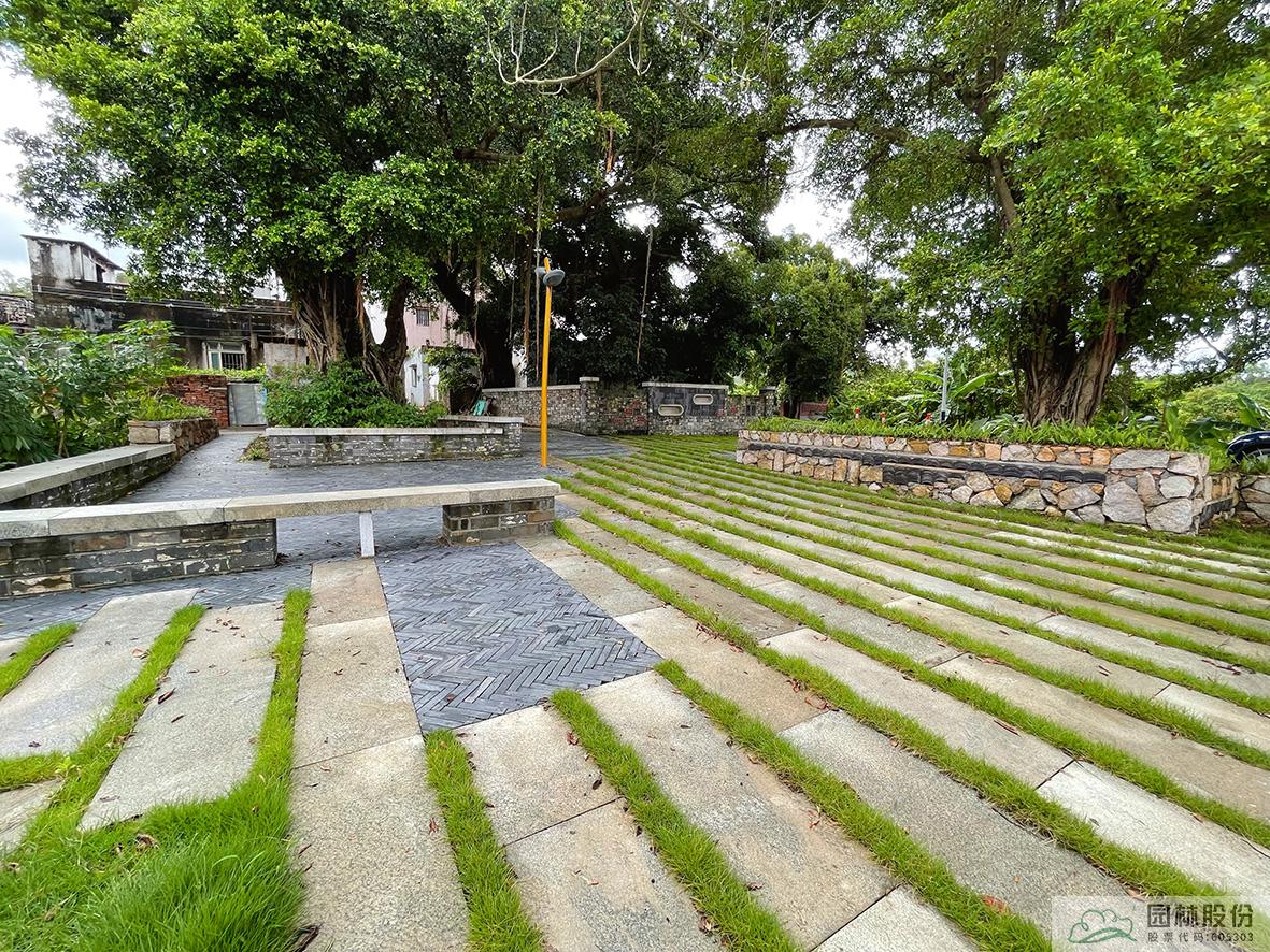 入口進入,是石咀防范匪患而建的黃泥百年碉樓,為凸出碉樓這一特殊的建筑,我們在碉樓設計開闊的,擁有與碉樓相關記憶符號的村口節(jié)點小公園。