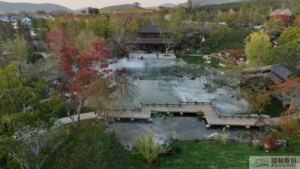 整個(gè)園區(qū)主要種植黃山欒樹、楓香、桂花等植物,植物景觀分為六個(gè)展示區(qū)。其中,翠竹園以散生竹為主,營(yíng)造翠竹掩映的效果;庭院植物以羽毛楓、桂花、紫薇等為主,在湖邊駁岸、庭院等小空間以花境組團(tuán)形式,營(yíng)造精致雅靜的植物景觀;花園植物區(qū)以康養(yǎng)植物為主,營(yíng)造清新而有益的花園空間,放松身心;茶園區(qū)以茶園的形式,展示西湖的茶園慢生活;彩葉山林植物模擬西湖常綠落葉闊葉混交林植物群落,以杭州鄉(xiāng)土植物為主,打造自然優(yōu)美、秋色迷人的風(fēng)景林;現(xiàn)代田園區(qū)以果蔬花園、田埂農(nóng)作、設(shè)施農(nóng)藝等形式展示現(xiàn)代詩(shī)意棲居的田園生活。