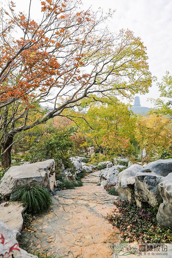 午后的暖陽(yáng)穿過(guò)竹林,在碎石拼裝的園路上灑下斑駁光影,沿著幽靜的小路漫步前行,來(lái)到“竹穩(wěn)”展區(qū)。此處選取西湖環(huán)境中“茂林修竹”的元素,以毛竹種植為主,結(jié)合觀賞價(jià)值較高的金鑲玉竹、龜甲竹等,營(yíng)造出曲徑通幽的景觀效果。