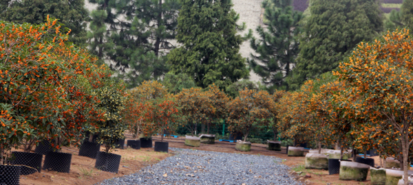 桂花是基地的主導(dǎo)苗木品種,公司依托雄厚的專業(yè)力量和研發(fā)能力,運(yùn)用現(xiàn)代化的繁育設(shè)施和技術(shù),生產(chǎn)各類(lèi)桂花觀賞盆栽苗、品種容器苗、工程苗、地被容器苗和林木容器苗等,桂花研發(fā)和產(chǎn)業(yè)化程度達(dá)到國(guó)內(nèi)外領(lǐng)先水平,是“中國(guó)桂花品種繁育中心”,承擔(dān)著國(guó)內(nèi)外專家的桂花課題研究、交流考察、新品種研發(fā)任務(wù);建有中國(guó)第一個(gè)桂花品種資源庫(kù),收集桂花品種100多個(gè),是國(guó)際上收集桂花品種最多最全的種質(zhì)資源庫(kù)之一;是國(guó)際桂花登錄組織認(rèn)可的桂花品種國(guó)際測(cè)試中心;自主研發(fā)了“杭州黃”等4個(gè)桂花新品種并通過(guò)省級(jí)審定,擁有自主知識(shí)產(chǎn)權(quán);承擔(dān)的科研項(xiàng)目“桂花品種基因(種質(zhì)資源)庫(kù)建設(shè)與優(yōu)良品種選育推廣”榮獲“2007年度杭州市科技進(jìn)步一等獎(jiǎng)”等,在桂花的科研方面,可謂是碩果累累。