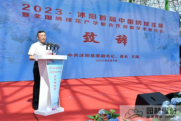 王瑞在致辭中代表沭陽縣委、縣政府及200萬花鄉(xiāng)人民,向參加開幕式的各位領(lǐng)導(dǎo)、各位嘉賓表示熱烈的歡迎和衷心的感謝,并簡要介紹了沭陽經(jīng)濟(jì)社會(huì)及繡球花產(chǎn)業(yè)發(fā)展。希望共同打造具有廣泛影響力、引領(lǐng)全國花卉行業(yè)發(fā)展的交易盛會(huì),進(jìn)一步擦亮沭陽“中國花谷”的彩色名片,奮力譜寫中國花木產(chǎn)業(yè)高質(zhì)量發(fā)展新篇章。