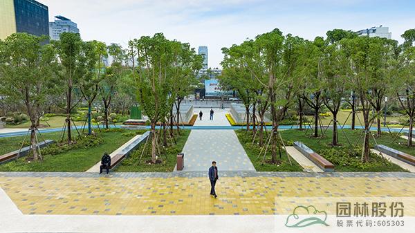 項(xiàng)目注重新優(yōu)植物的應(yīng)用,行道樹采用娜塔莉、中心廣場通道兩側(cè)綠地種植美國紅楓、中心廣場內(nèi)種植銀杏樹等色葉樹種。翠綠的枝葉相互掩映,樹下設(shè)有林蔭座凳,夏季可有“大樹成蔭”之景,市民可觀賞可乘涼,充分感受自然野趣。主道路行道樹為染井吉野等開花與色葉樹種,周邊綠地采用混合花境置石結(jié)合的配置手法,時(shí)花、低矮花灌木與景石自然搭配,并大量應(yīng)用了公司自主研發(fā)的繡球新品種,營造景觀豐富的長效花境景觀。