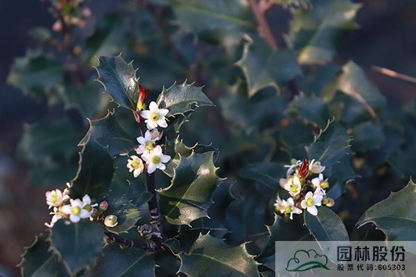 其中,彩葉冬青更是其中的佼佼者。除了果實(shí)可供觀賞外,它們還擁有黃色葉、藍(lán)綠色葉和銀邊葉等彩色葉片。葉形變異也是相當(dāng)豐富,具四角狀,橢圓形,倒卵形等多種形狀;有些品種具有刺狀葉片,而有些則是光滑的葉片;有些品種葉緣還具有波浪狀的起伏。四季景觀分明,在春季,它們的莖腋間會(huì)簇生出一朵朵清新可愛(ài)的小花;而在當(dāng)年生的枝條上,則會(huì)抽出亮麗的嫩葉。到了秋季,隨著氣溫的驟降,葉色會(huì)變得更加地明艷;冬季的時(shí)候,在雌性的植株枝條上,則會(huì)掛滿累累的果實(shí)。這些不同的形態(tài)和色彩變化,使得彩葉冬青在不同的時(shí)間和空間中呈現(xiàn)出不同的姿態(tài)、色彩與意境,從而提升了冬青品種的觀賞價(jià)值,成為園林景觀中重要的觀葉植物。